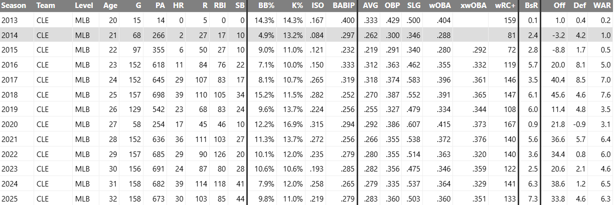Jose Ramirez’s Fangraphs page