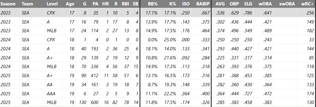 Then there is Colt Emerson, who had such a strong season that he earned a call-up to AAA in September despite beginning the year in High-A Everett. Some believe he has a real chance to make the Opening Day roster in 2026. Others think he needs more time and may not be ready until late in the season or even 2027. The key point is that the Mariners appear willing to give him a legitimate opportunity similar to the one Julio Rodriguez received. If Emerson impresses in spring training, Seattle may not hesitate to promote him.