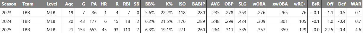 Junior Caminero’s Fangraphs page