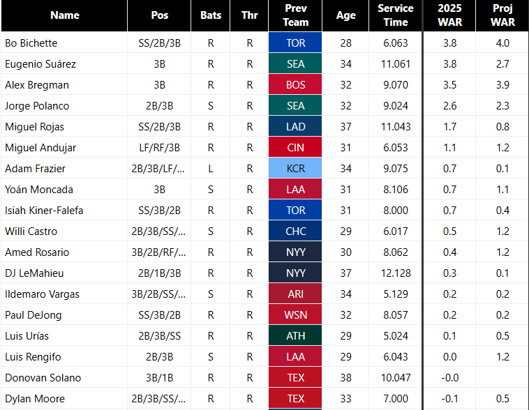 “Third Base” Free Agents 2025-2026. Most of these guys don’t even play third.