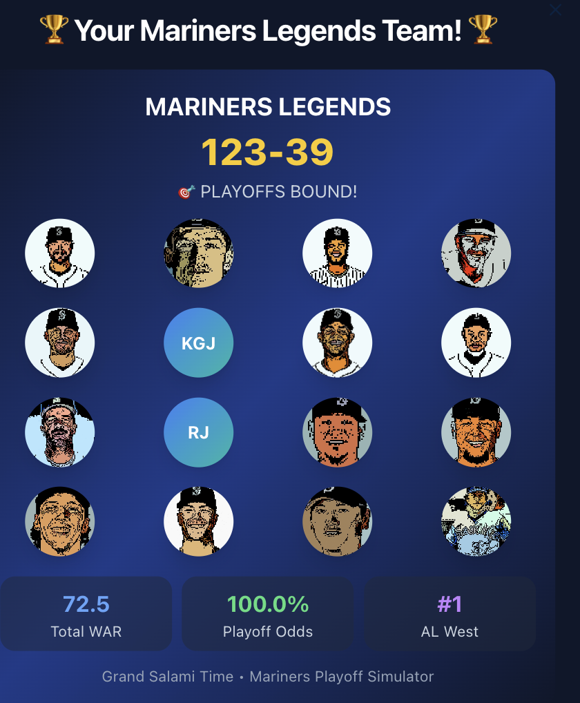 I remember sitting in a room ten years ago with friends, just naming the all time Mariners from memory. Griffey, Ichiro, Edgar, Randy. Then the debates would start. Who is the all time third baseman? Does Jamie Moyer make the rotation? Is Félix already a lock for the HOF or do you need a longer peak? Every Mariners fan has had some version of that conversation, usually late, usually loud, and always ending with the same question. What would actually happen if you put the greatest Mariners of all time on the same team?
